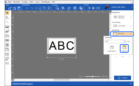 Klicken Sie im Band-Einstellbereich auf die Etikettenlänge-Einstellung und wählen Sie dann Manuell.
