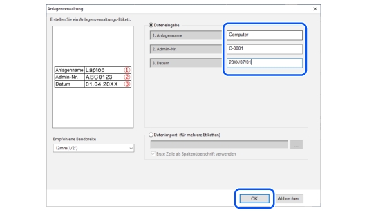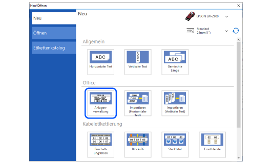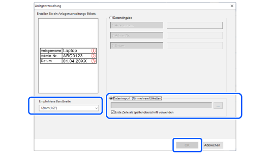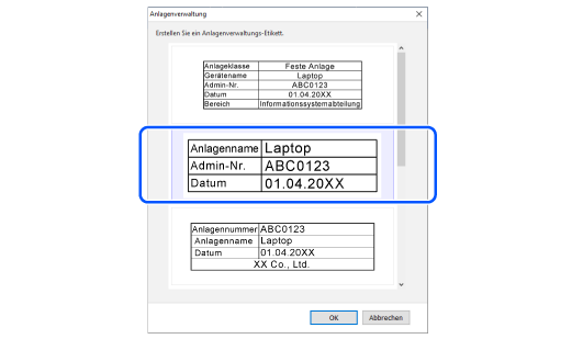 Oben > Unterschiedliche Etiketten erstellen > Etiketten für die Anlagenkennzeichnung (Anlagenverwaltung) erstellen