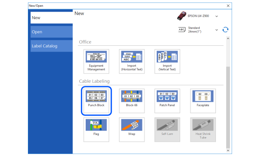 Note:Label types that are not available with the set tape are grayed out and not selectable. |