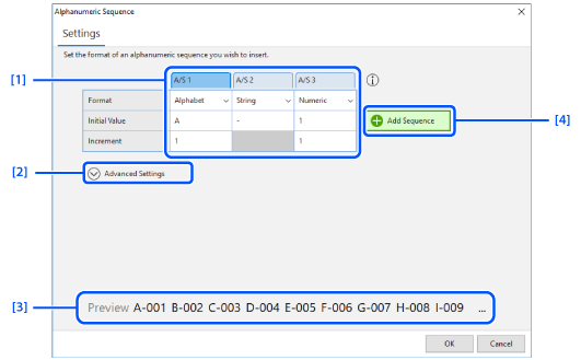 Click this to make the advanced settings. To create the example labels, change the settings in the A/S 3 column as shown below.
