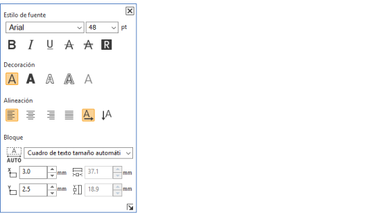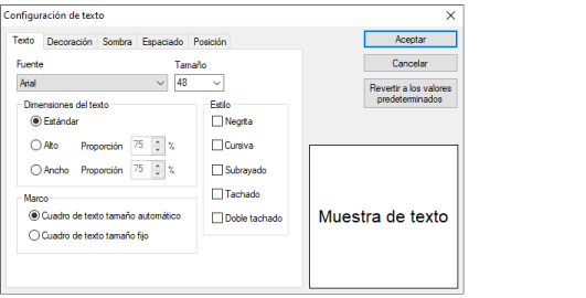 Aparecerá una ventana de configuración para el objeto seleccionado.