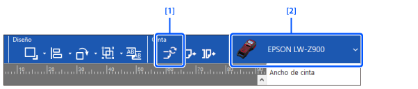 Haga clic en este icono para actualizar la configuración de la cinta al tipo y a la anchura detectados de la cinta instalada en la impresora. También se actualizará la visualización de la etiqueta en la Ventana de edición de diseño. Si la configuración de la cinta no se actualiza, seleccione la cinta instalada en la impresora en Ancho de cinta, en el área de configuración de la cinta. |