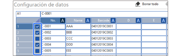 Es posible seleccionar determinadas filas e imprimir solo estas. Seleccione las casillas de verificación de las filas que desee imprimir.
