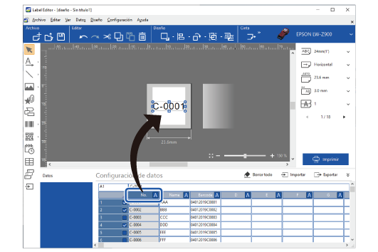 La Ventana de creación de datos permite crear fácilmente una gran cantidad de etiquetas importando un archivo creado en Excel u otra aplicación.
