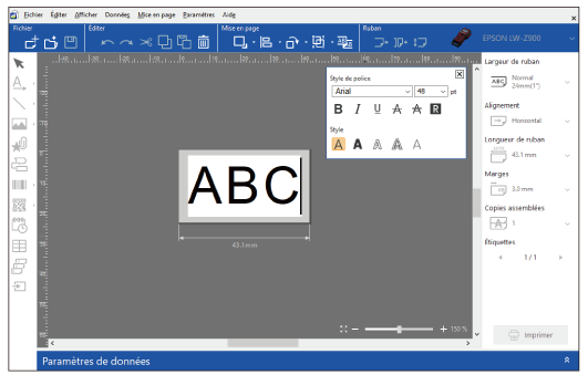 Remarque :Les types d'étiquettes qui ne sont pas disponibles avec le ruban défini sont grisés et ne peuvent pas être sélectionnés. |