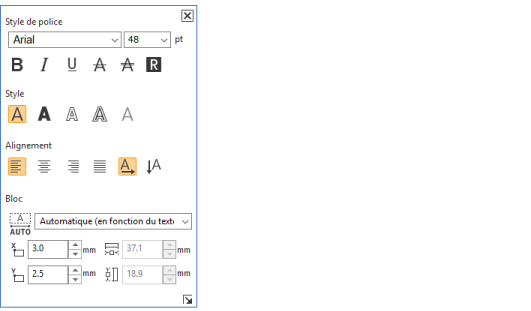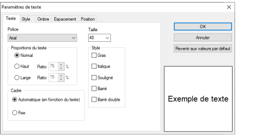 Une fenêtre de paramètres pour l'objet sélectionné s'affiche.