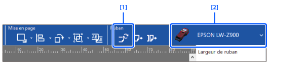 Cliquez sur cette icône pour mettre à jour les paramètres du ruban sur le type détecté et la largeur du ruban installé dans l'imprimante. L'affichage de l'étiquette dans la Fenêtre de modification de la mise en page est également mis à jour. Si les paramètres du ruban ne sont pas mis à jour, sélectionnez le ruban installé dans l'imprimante dans Largeur de ruban, dans la zone des paramètres du ruban. |