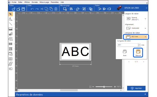 La longueur d'étiquette change automatiquement par défaut en fonction des objets insérés dans la Fenêtre de modification de la mise en page. Une explication de la définition manuelle de la longueur d'étiquette est présentée ci-dessous.