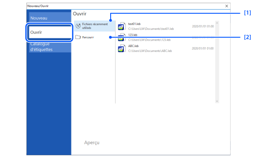 Haut > Opérations de base > Ouverture de fichiers d'étiquettes enregistrés