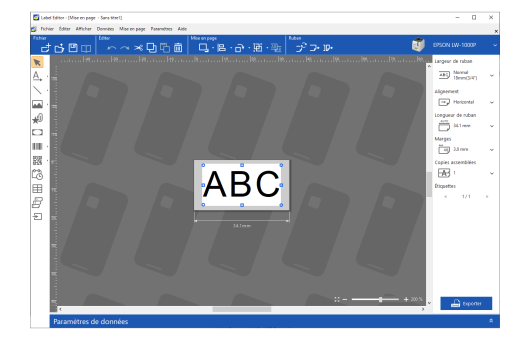 Un modèle du type d'étiquette sélectionné s'affiche. Insérez des objets comme du texte et un symbole.