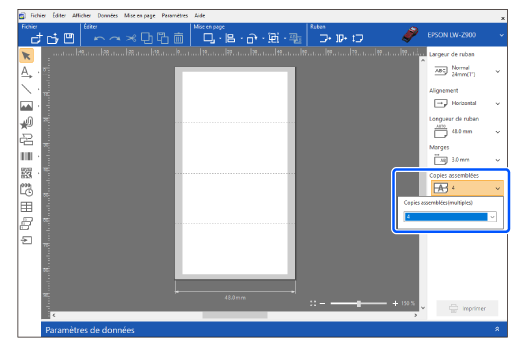 Indiquez le nombre de pièces d'une étiquette dans Copies assemblées.