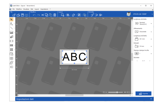 Viene visualizzato un modello per il tipo di etichetta selezionato. Inserire oggetti come testo e simboli.