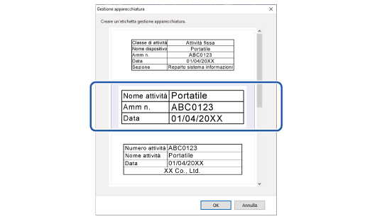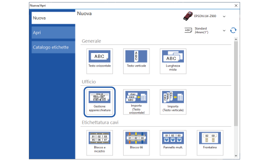Inizio > Creazione di una varietà di etichette > Creazione di etichette per la marcatura delle apparecchiature (Gestione apparecchiatura)