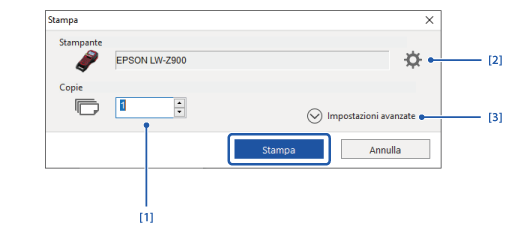 Fare clic qui per visualizzare la finestra delle proprietà del driver della stampante. È possibile modificare le impostazioni del nastro, le impostazioni di taglio, ecc. |