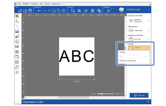 Se la stampante supporta la stampa senza bordi, è possibile stampare etichette senza margini superiore, inferiore, sinistro e destro.
