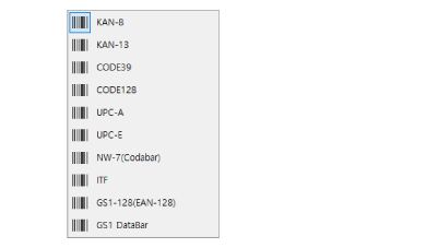 참고:해당 아이콘 중 하나를 클릭하면 이전에 선택했던 바코드 또는 QR 코드 종류에 대한 설정 창이 표시됩니다. 다른 종류의 바코드 또는 QR 코드를 선택하려면 아이콘 옆에 있는