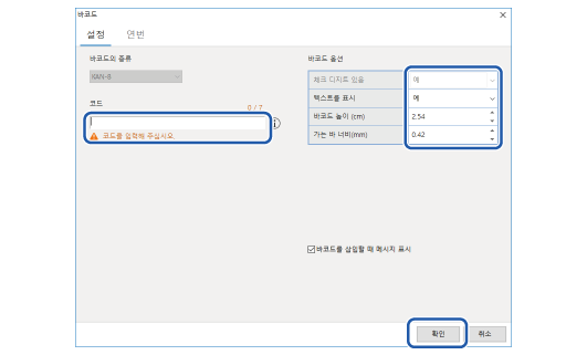 맨위 > 다양한 라벨 만들기 > 바코드 또는 QR 코드 추가하기