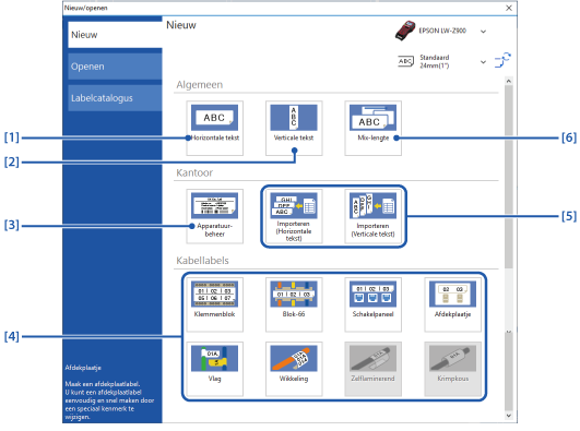 Boven > Basisbediening > Een nieuw label maken