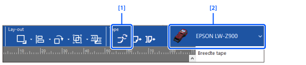 Klik op dit pictogram om de tape-instellingen bij te werken naar het type en de breedte van de tape die in de printer zit. De weergave van het label in het Venster lay-outbewerking wordt ook bijgewerkt. Als de tape-instellingen niet worden bijgewerkt, selecteer dan in het paneel voor de tape-instellingen bij Breedte tape welke tape in de printer zit. |