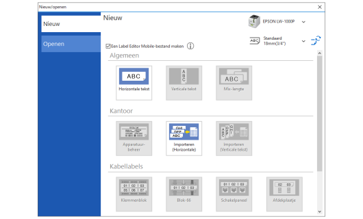 Boven > Basisbediening > Labels maken voor Label Editor Mobile