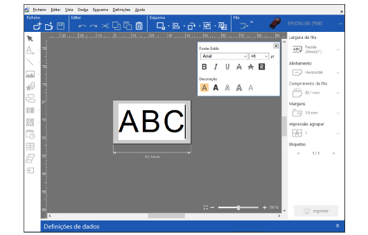 É apresentado um modelo para o tipo de etiqueta selecionado. Insira objetos como, por exemplo, texto e um símbolo.