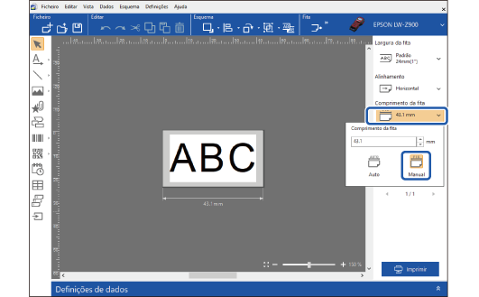 Na área de definições da fita, faça clique na definição de comprimento da fita e, em seguida, selecione Manual.