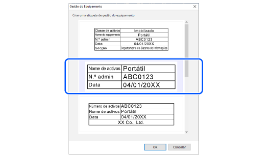 Início > Criar uma Variedade de Etiquetas > Criar etiquetas para identificação de equipamento (Gestão do Equipamento)