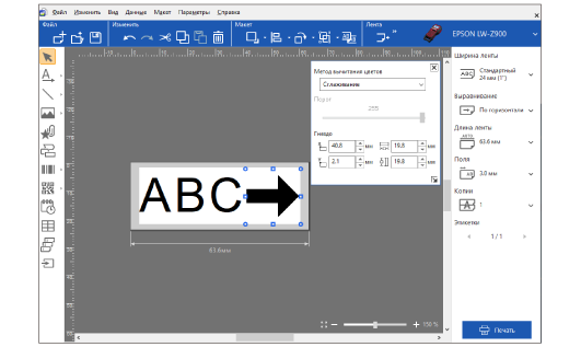 В начало > Основные операции > Добавление объектов на этикетку