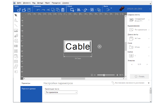 Можно создать этикетки различной длины и распечатать их все одновременно. Поскольку длина этикетки меняется автоматически в зависимости от длины текста, несколько этикеток разной длины можно создать быстро и легко.