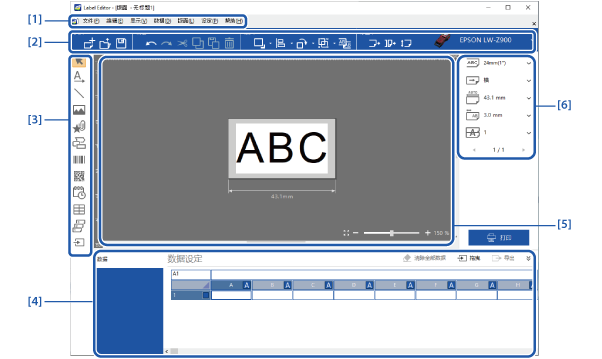 数据创建窗口 您可以为插入到版面编辑窗口中的标签输入并编辑内容。如果隐藏此窗口,单击屏幕右下角的 |