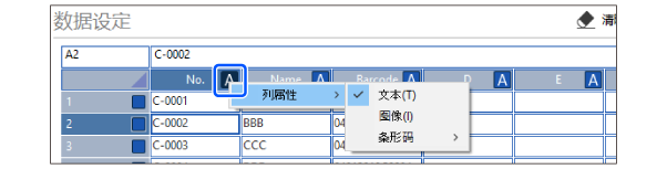 导入文件后,所有列的属性将设为文本。您需要更改包含条形码或二维码数据或图像(图像文件的完整路径名)的列的属性。