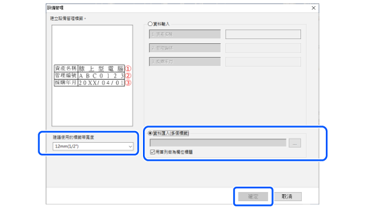首頁 > 建立多種標籤 > 建立設備標記(設備管理)用標籤