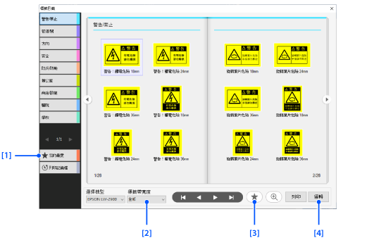 您可以列印標籤目錄內的標籤。有各種類型的標籤設計可供選擇,例如注意標籤、警告標籤,可以在辦公室、學校或醫院中使用的標籤。