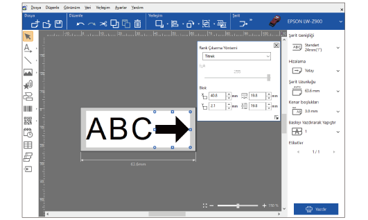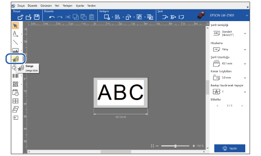 Bir etikete simge, kenarlık, görüntü ve barkod gibi birden çok nesne ekleyebilir ve bunları serbestçe düzenleyebilirsiniz. Aşağıdaki prosedür, bir metni ekledikten sonra simge eklemek için bir örnektir.