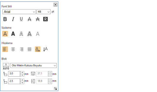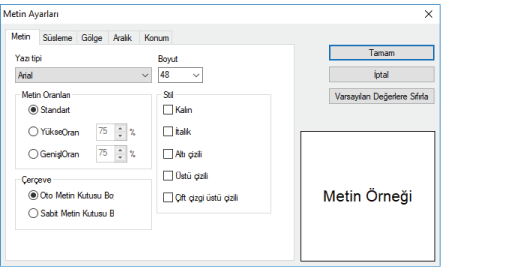 Metin ayarları penceresi
