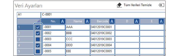 Veri oluşturma penceresi, Excel veya başka bir uygulama tarafından oluşturulan bir dosyayı içe aktararak kolayca çok sayıda etiket oluşturmanıza olanak tanır.
