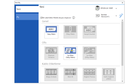 En Üst > Temel İşlemler > Label Editor Mobile İçin Etiketler Oluşturmak