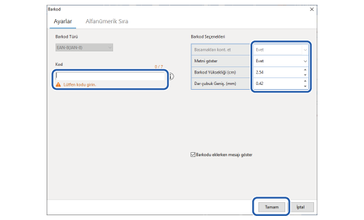 En Üst > Çeşitli Etiketler Oluşturma > Barkod veya QR Kodu Ekleme