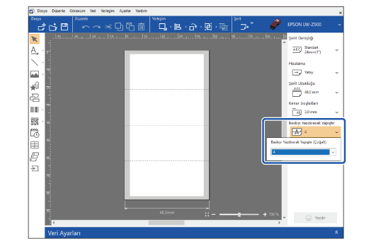 Bir etiketin parça sayısını Baskıyı Yazdırarak Yapıştır'da belirtin.