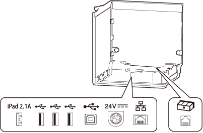 Når du bruger en ekstra skærm til kunderne (DM-D30), skal du forbinde USB-kablet til USB-stikket (Type-A).