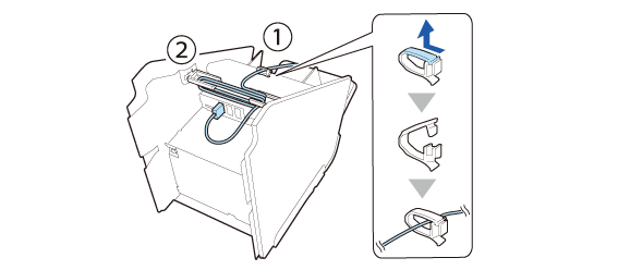 Като придържате таблета с ръка, регулирайте дължината на кабела, който излиза от принтера. Осигурете достатъчна дължина на кабела, за да предотвратите огъването му под остър ъгъл.