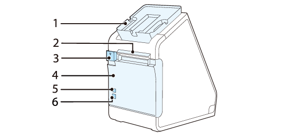 Brug dette håndtag til at åbne dækslet til papirrullen. |