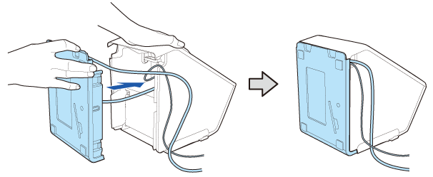 Bringen Sie die untere Abdeckung in eine aufrechte Position und drücken Sie die Abdeckung zum Befestigen horizontal zum Druckergehäuse.