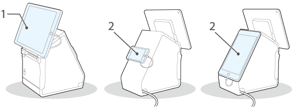 Les tablettes pouvant être connectées à l’imprimante et les connecteurs USB disponibles sont indiqués ci-dessous. Pour connaître l’emplacement des connecteurs USB, reportez-vous à la section Connecteurs.