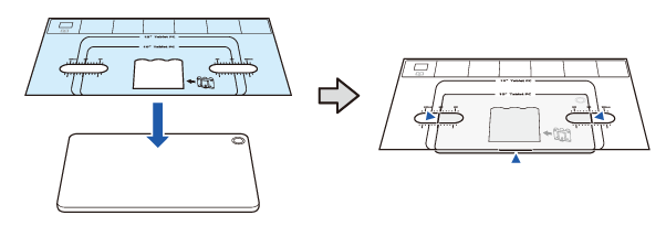 Helyezze az illesztési sablont a táblagépre az alábbi útmutatás alapján, majd rögzítse.