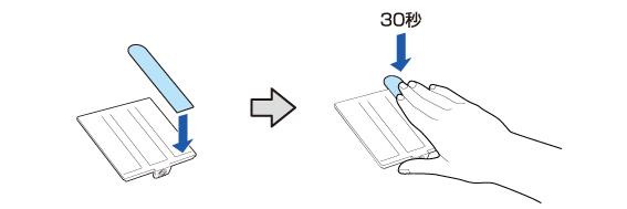 アタッチメントに貼り付けシールを貼り付け、約30秒間強く押し付けます。