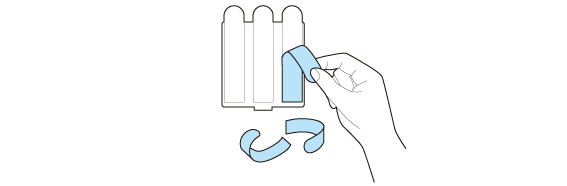 正面タブレット用アタッチメントから、はくり紙3枚を剥がします。