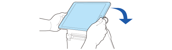 Țineți cu mâinile ambele părți ale tabletei, apoi schimbați unghiul. Unghiul poate fi reglat într-un interval de 40 de grade.