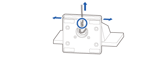 يمكن توجيه كبل USB إلى أحد الاتجاهات الثلاثة. ضع كبل USB في الثقب الموجود أسفل الحامل لتركيبه.