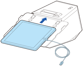 ملاحظة:إذا لم يتم السماح لجهازك اللوحي بالاتصال بالموصل الخاص بالطابعة، فقم بسحب كبله للخارج من خلال فتحة الطابعة.